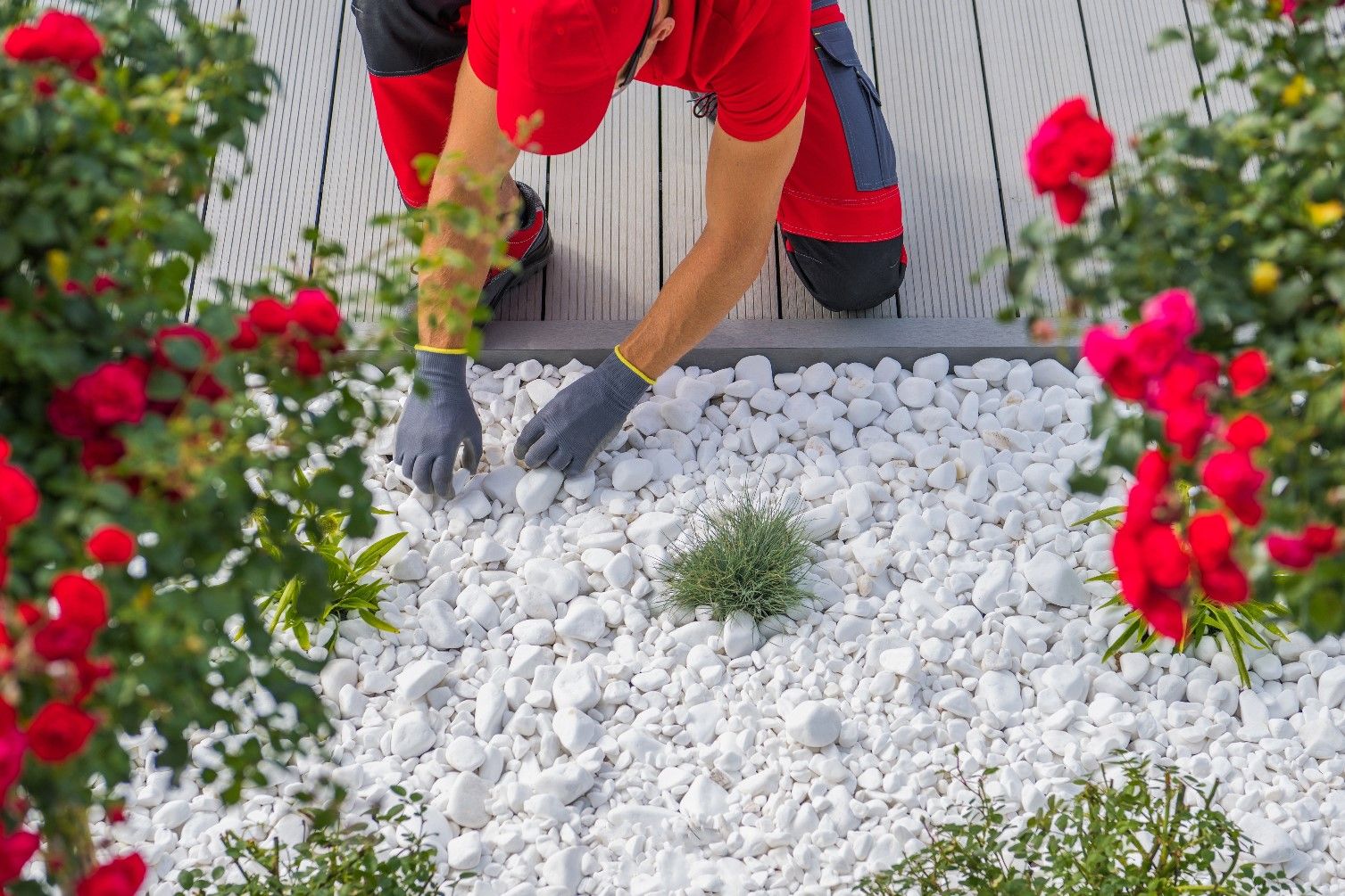 Además de mejorar la temperatura del suelo, las piedras blancas frenan el crecimiento de yuyos. Actúan como una barrera natural que impide que las malezas aparezcan, evitando así el uso de herbicidas o productos químicos.